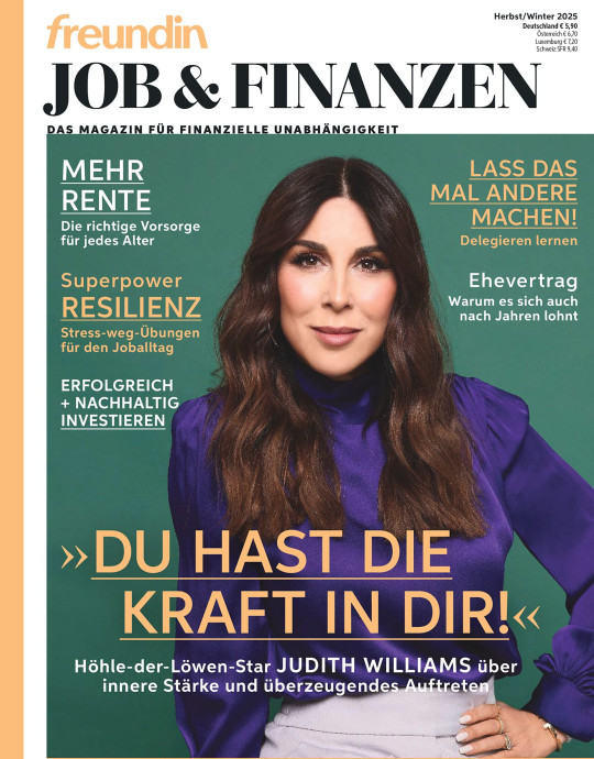 Im freundin Special „Job & Finanzen“ dreht sich alles um Karriere, Geld-Management und persönliche Entwicklung. Erfahren Sie von Tijen Onaran, Delia Lachance und Verena Pausder, wie Sie erfolgreich vorsorgen, anlegen und entspannen können. Machen Sie den Talente-Test und entdecken Sie Ihr volles Potenzial. Bestellen Sie jetzt freundin „Job & Finanzen“ und profitieren Sie von wertvollen Informationen für Ihre Karriere und Ihr Finanzmanagement.